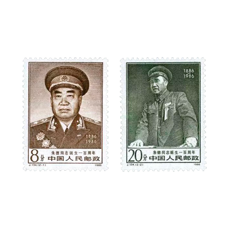 1986年12月1日,为纪念朱德同志诞生一百周年发行该套邮票,全套共2枚。