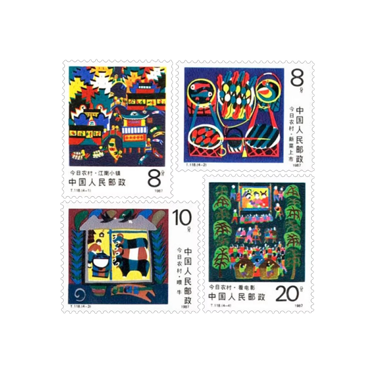 1987年6月25日,为纪念中国农村的发展状况发行此套邮票,全套共4枚。