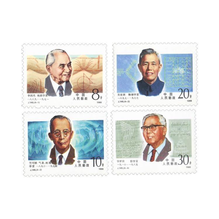 1988年4月28日,为表彰中国现代科学家们的功绩,邮电部发行了该套邮票, 全套共4枚。