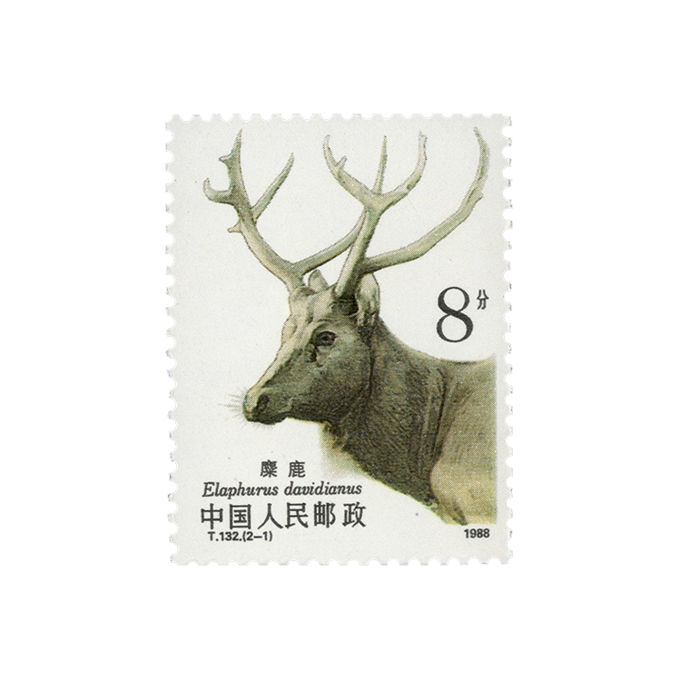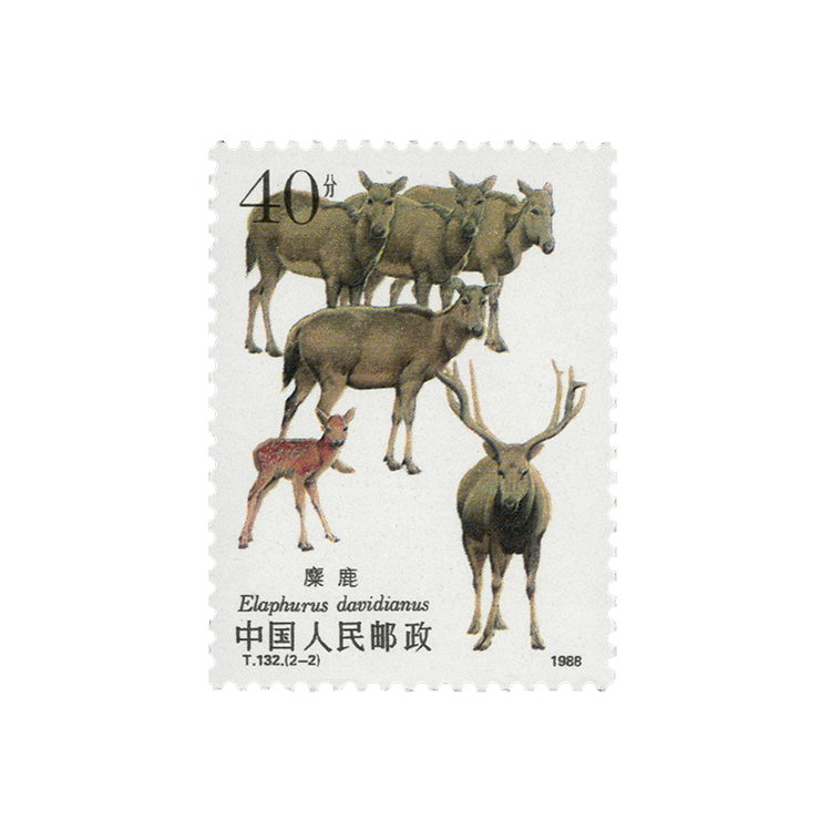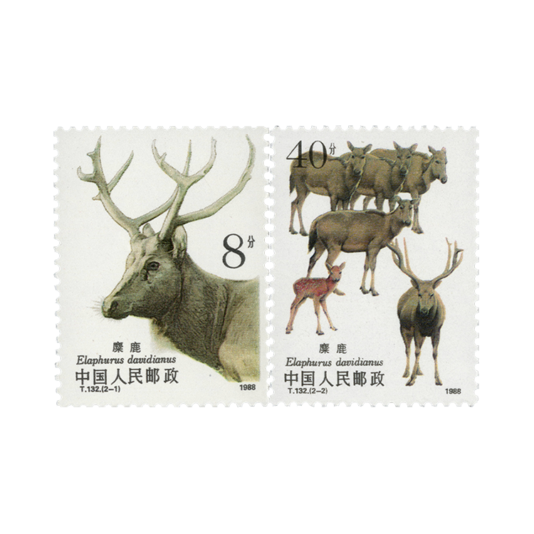 邮电部为提高全社会保护珍稀动物的意识发行了《麋鹿》特种邮票,1988年12月20日,全套2枚。