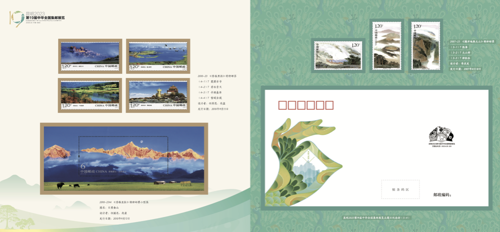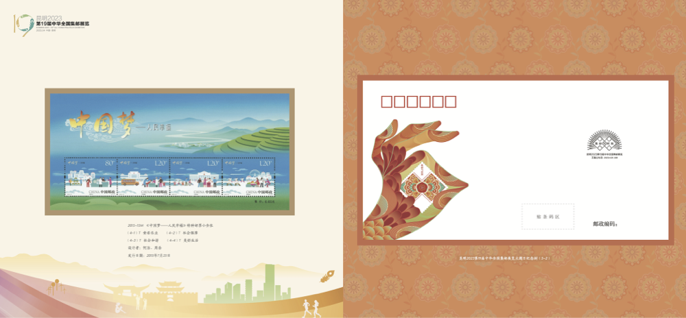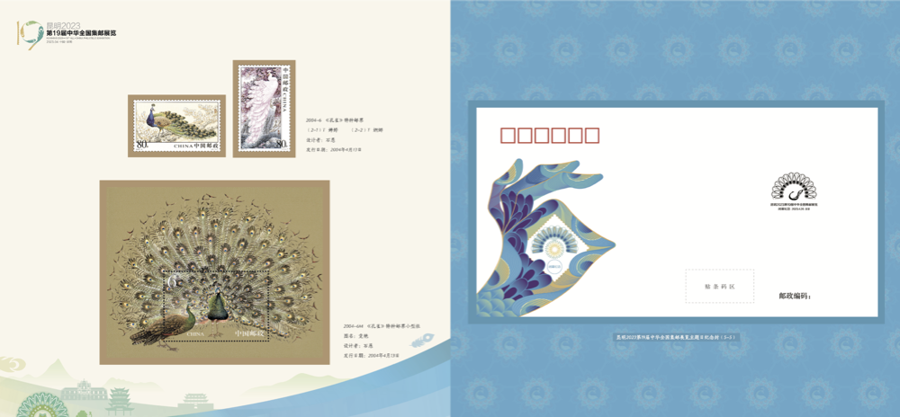 昆明2023邮展邮票张、纪念邮资明信片;邮展主题纪念封一套5枚;