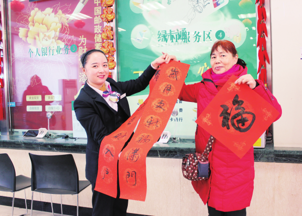 据了解,本次活动共为300 余位客户书写春联,送出“福”字 500 多幅,营造了喜庆的节日氛围,也拉近了与客户的距离,扩大了邮储银行的知名度与客户满意度。