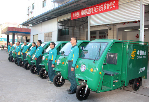 10月11日,江西省瑞昌市邮政分公司举行“绿色使者 绿邮担当”暨电动三轮车发放仪式。这是瑞昌邮政助力全国文明城市创建、贯彻落实绿色邮政行动的一项积极举措。