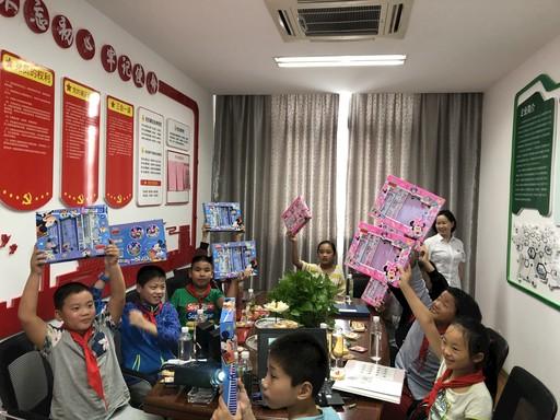 日前,江苏省南京市六合区邮政分公司党总支以开学季和中秋送温暖为契机,开展关爱留守儿童公益活动,邀请马集小学10名留守儿童到基层邮政支局参观了解邮政服务工作,普及金融和集邮小知识。图为活动结束后,六合区分公司向留守儿童赠送学习用品。