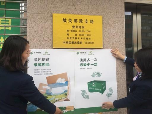 自10月1日起,陕西省铜川市邮政分公司大力实施绿色邮政项目,向客户推荐使用绿色环保邮政包装箱。图为宜君县城关邮政支局营业员在营业厅门前张贴宣传海报,向过往群众宣传绿色邮政建设行动。 □王建强 摄影报道