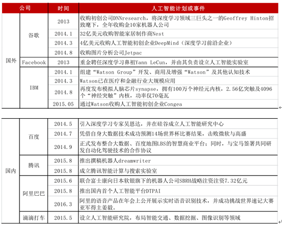 国内外行业巨头纷纷涉足“人工智能”