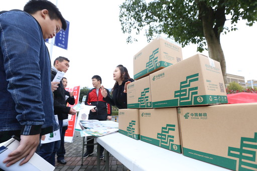 绿色包装工程是打好污染防治攻坚战、开展绿色邮政建设行动的首场“战役”。重庆市邮政分公司全面推进包装绿色化、减量化、可循环,至11月底,新标准箱到货36065个、全叠盖免胶带式包装箱到货28520个,现已在重庆市内所有邮政支局所使用。图为重庆市大足区邮政分公司员工进社区宣传邮政绿色包装。 □记者 李平 通讯员 唐晓勇 摄影报道