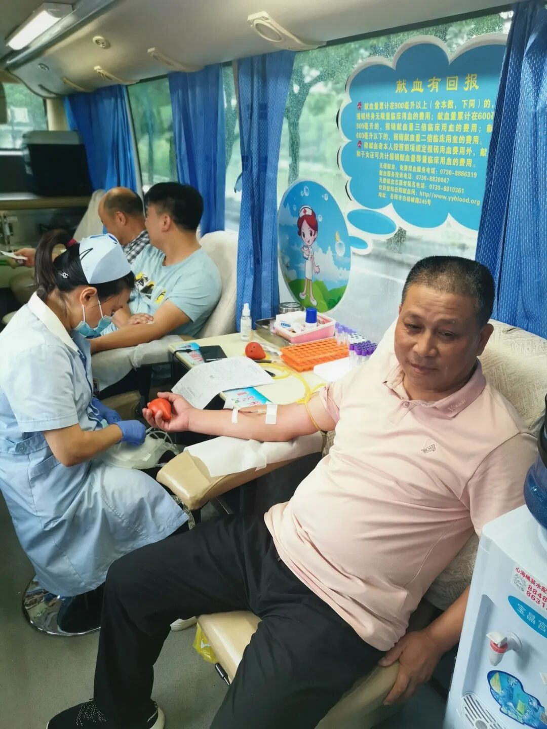 7月7日上午,岳阳临湘市邮政分公司积极响应临湘市红十字会无偿献血倡仪,组织机关党员前往临湘市绿化广场参加无偿献血活动,在采血途中便有了开头那一番相互鼓劲的话语。