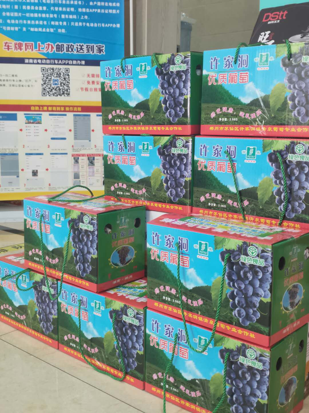 “昨天下午才下的单,今天早上就到家门口的邮政网点了,比去超市方便多了,价格还便宜。”家住南岭山庄的王女士来附近的邮储银行网点领取线上团购商品,看到新鲜的清泉葡萄高兴地说道。截至8月19日上午,苏仙区邮政分公司通过社区团购项目从“邮乐优鲜”平台销售葡萄5281单,实现销售额11.83万元,受到了当地政府、合作社和农户的高度认可,获得市民们一致好评。“许家洞清泉葡萄”社区团购项目也给清泉村带来上万份订单,预计总销量在10万斤以上。