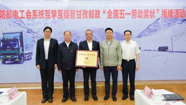 6月8日,中国国防邮电工会系统互学互促暨甘孜邮政“全国五一劳动奖状”授牌活动在康定举行。中国国防邮电工会党组书记、主席刘迎祥为甘孜州邮政分公司授牌,中国国防邮电工会二级巡视员万敏,中国国防邮电工会国防科技工作部部长顾博威、邮政工作部部长李月珍,四川省邮政分公司副总经理、工会主席万立等相关领导出席授牌活动,中国邮政集团工会常务副主席谷德凯主持授牌活动。