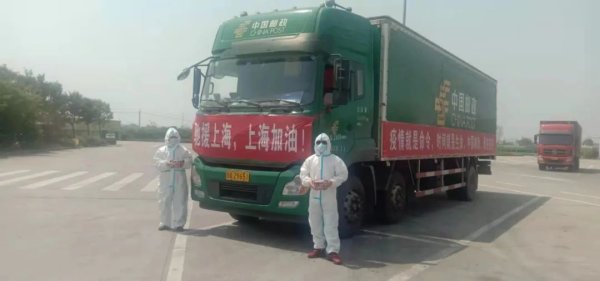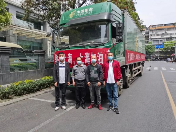 4月6日中午13:15,满载着生活物资、食品、药品的邮车,从四川省卫健委驶出,目的地—上海。