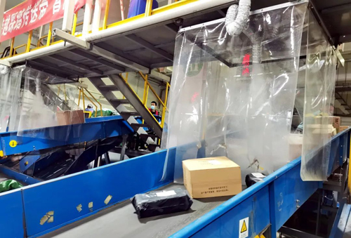在邮件分拣环节,给邮件传输带上安装了密闭的消毒设备。从车厢卸下的邮件,全部要经过消毒设备进行消杀后,再运送到分拣区。
