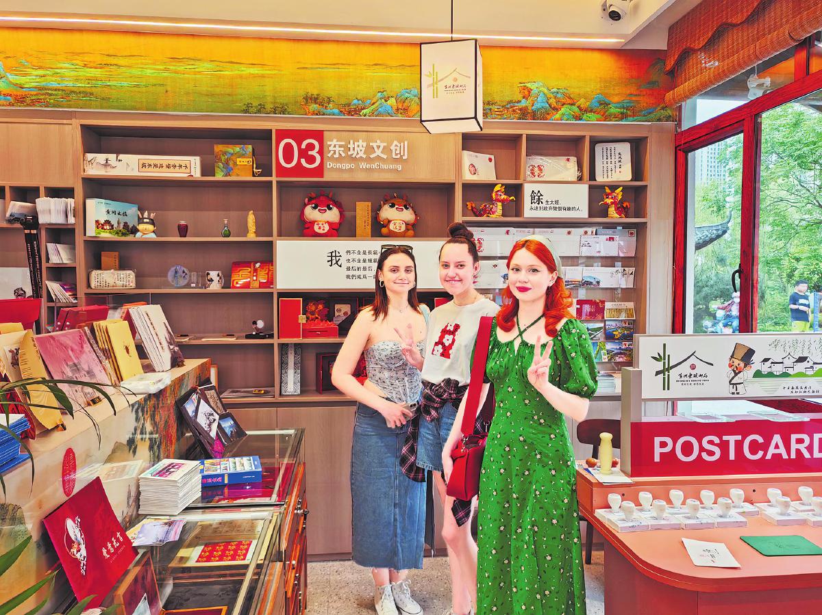 8月14日,“一带一路”项目建设合作跨国圆桌会组委会原秘书长邢军、部分外国友人和机构代表参观访问湖北省黄冈市黄州区,黄州东坡邮局被列为参观重点之一。走进东坡邮局,考察团成员先后参观了东坡纪念邮票展示区、东坡文化主题文创展示区、东坡诗词图书展示区、书写集戳区、咖啡饮品区、直播带货区、婚庆礼品区。大家驻足欣赏墙面上东坡与黄州、东坡与中国、东坡与世界文化故事的诗词书画,兴趣极浓地挑选、翻看各种精美的文创产品,询问邮品开发情况,并相继购买,还盖上东坡邮局纪念邮戳。图为漂亮的俄罗斯小姐姐在东坡文创区拍照打卡。