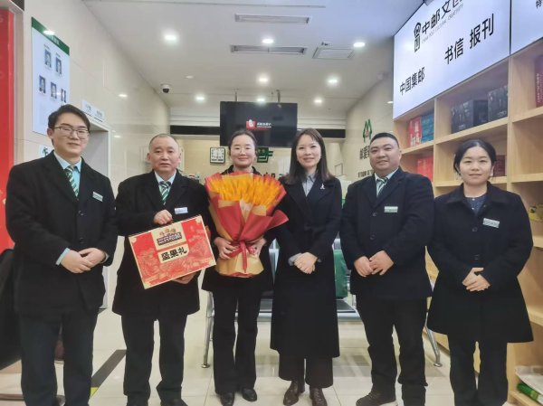 12月1日,永川邮政大河邮政所成功实现了预录保费57万元,进度100%的辉煌成绩,这也是首个在预约投保首日成功达成跨一目标100%的网点。永川邮政工会主席卢玉得知这一喜讯后,第一时间代表工会赴大河邮政所送上了大麦花束及坚果礼盒,以此表达最诚挚的祝贺与敬意。工会主席卢玉不仅高度赞扬了大家的辛勤付出和卓越成果,还关切地询问了团队成员的工作和生活情况,展现了工会对于员工的深切关怀。
