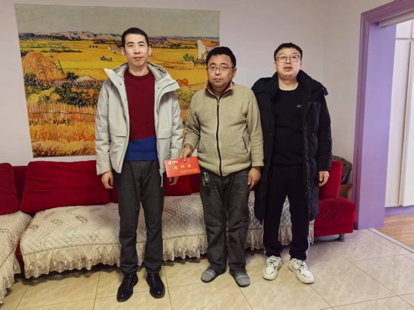 1月21日,寄递事业部总经理蒋金龙和寄递工作人员一行来到患病职工黄 宇家中慰问,为他带去慰问金,并带去市分公司党委、市工会关怀和新春的美好祝福,并送上了新春的祝福和问候,叮嘱他们保重身体,保持积极乐观的心态,勇敢战胜病魔,祝他们早日康复!