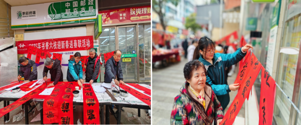 六盘水市六枝特区分公司联合特区总工会、书法家协会,在人民路邮政支局开展写“福”送春联活动。书法老师们笔走龙蛇,创作出一幅幅满含祝福的作品。居民们围聚四周,认真欣赏、精心挑选,工作人员则热情协助。除了现成的吉祥春联,还能根据居民的个性化需求定制,大家对墨香四溢的手写春联赞不绝口,活动现场年味十足,温馨又喜庆。
