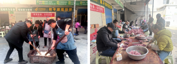 黔南州惠水县分公司与长顺县分公司以各具特色的活动,为员工们送上暖心关怀,营造出浓浓的节日氛围。惠水县分公司在职工食堂举办的“迎新年美食节”活动,为辛勤忙碌的员工们送上了一份特别的“邮政温度”。活动精心准备了琳琅满目的各类佳肴,员工们围坐在一起,共享美食盛宴,现场欢声笑语不断,处处洋溢着欢乐祥和、积极向上的氛围,大家纷纷表示,此次活动不仅带来了美食的享受,更让人深切感受到邮政大家庭的温暖,今后将以更加饱满的热情朝着下一阶段目标奋勇前进。长顺县分公司在单位院坝举办温馨难忘的年夜饭活动。活动中,传统“打糍粑”环节热闹非凡,大家齐心协力、干劲满满。宰杀肥猪饱含新年丰收吉祥的美好寓意,后台人员分工明确,用新鲜猪肉精心烹制出一道道美味。支局与投递人员齐聚一堂,一边品尝美食,一边畅谈往昔,不仅增进了团队凝聚力,更为新一年的工作注入无限活力 。