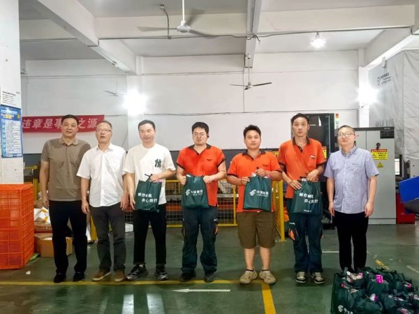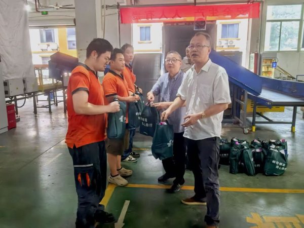 7月15日,杭州市分公司纪委书记、副总经理陈法华带队前往余杭仓前揽投部,为奋战在高温一线的快递员工送去组织的关怀和防暑降温物资。