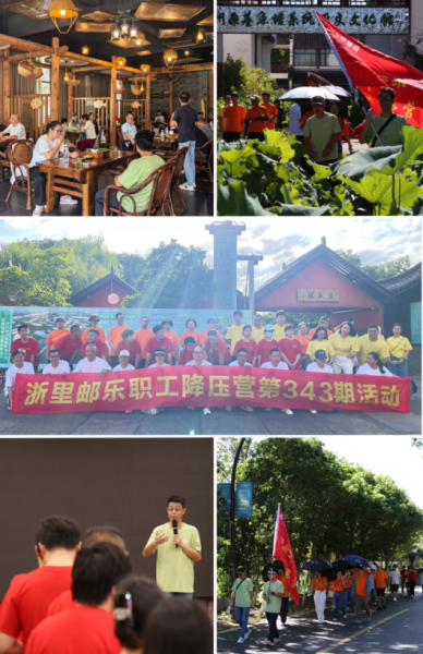 8月14日至15日,湖州市邮政工会在荻港渔庄集训营基地开展 “浙里邮乐”职工降压营第343期活动,来自安吉、德清、长兴三县分公司及吴兴区、南太湖新区、南浔区三个分局的45名学员参与其中。