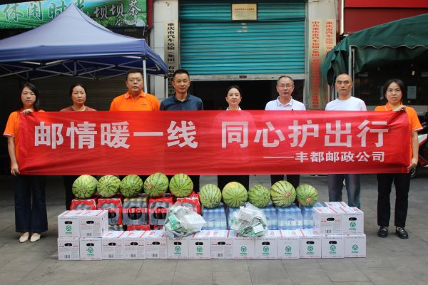 8月19日,丰都邮政组织开展“夏日送清凉”慰问活动,领导班子走访了渝运集团、富海出租车公司、瑞祥出租车公司等主要出租车运营企业,向一线驾驶员及管理人员送去清凉饮料、矿泉水、西瓜等防暑物资,为他们送去关怀与清凉。