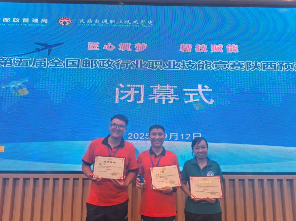经过俩天激烈的赛程,通过笔试和操作考试,来自高新区域的王峥荣获快递员项目二等奖,阎良分公司刘梦姚、钟楼区域曹鹏飞荣获优胜奖。