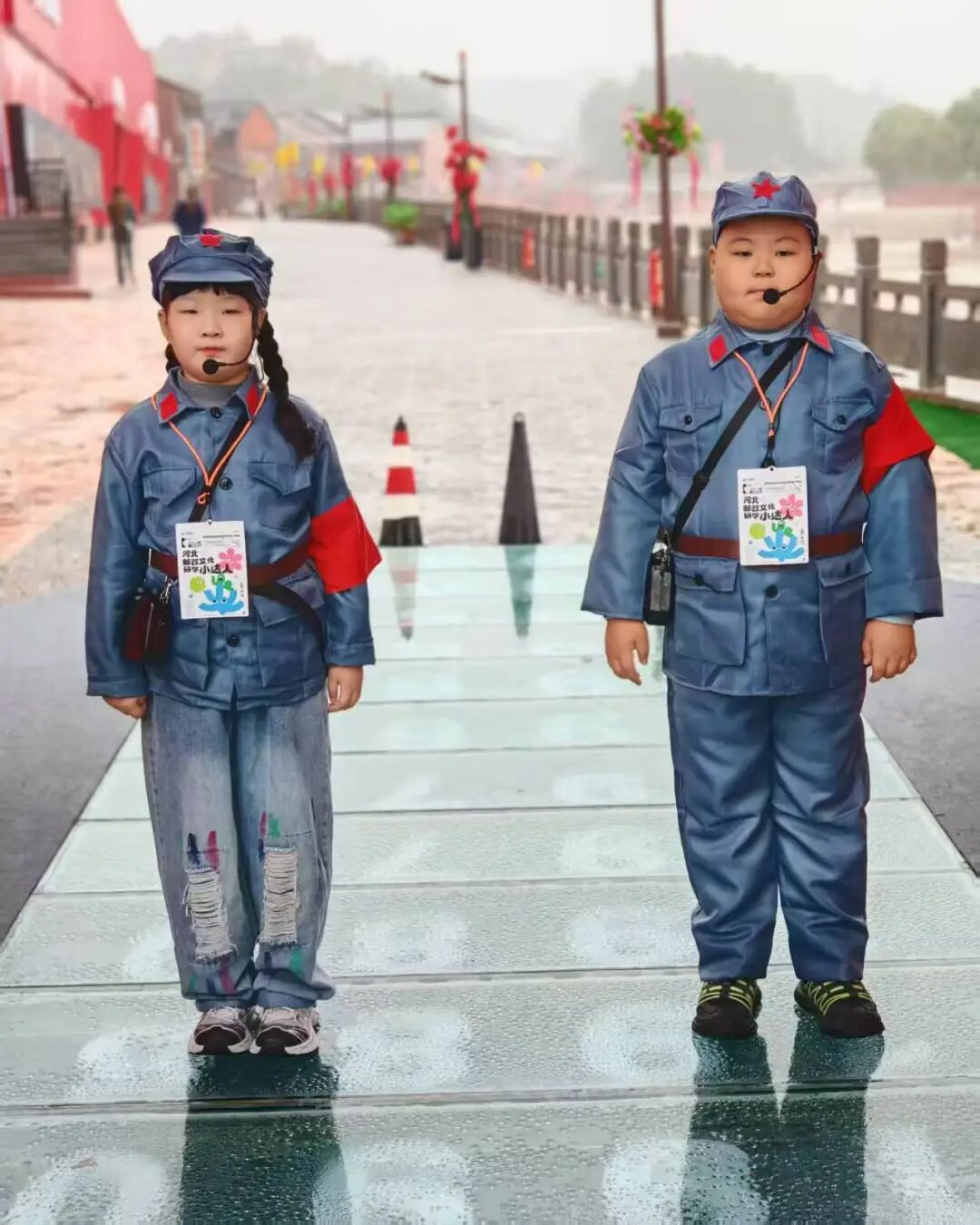 上午九时,在1940街区,孩子们变身“小小红军”,领取定制背心和工作牌。领讲员王启萌兴奋地表示:“穿上这身红军服,我感觉自己肩负起了传递红色故事的使命。”细密的雨丝并未消减孩子们的热情,反而为这场红色之旅增添了别样的意境。