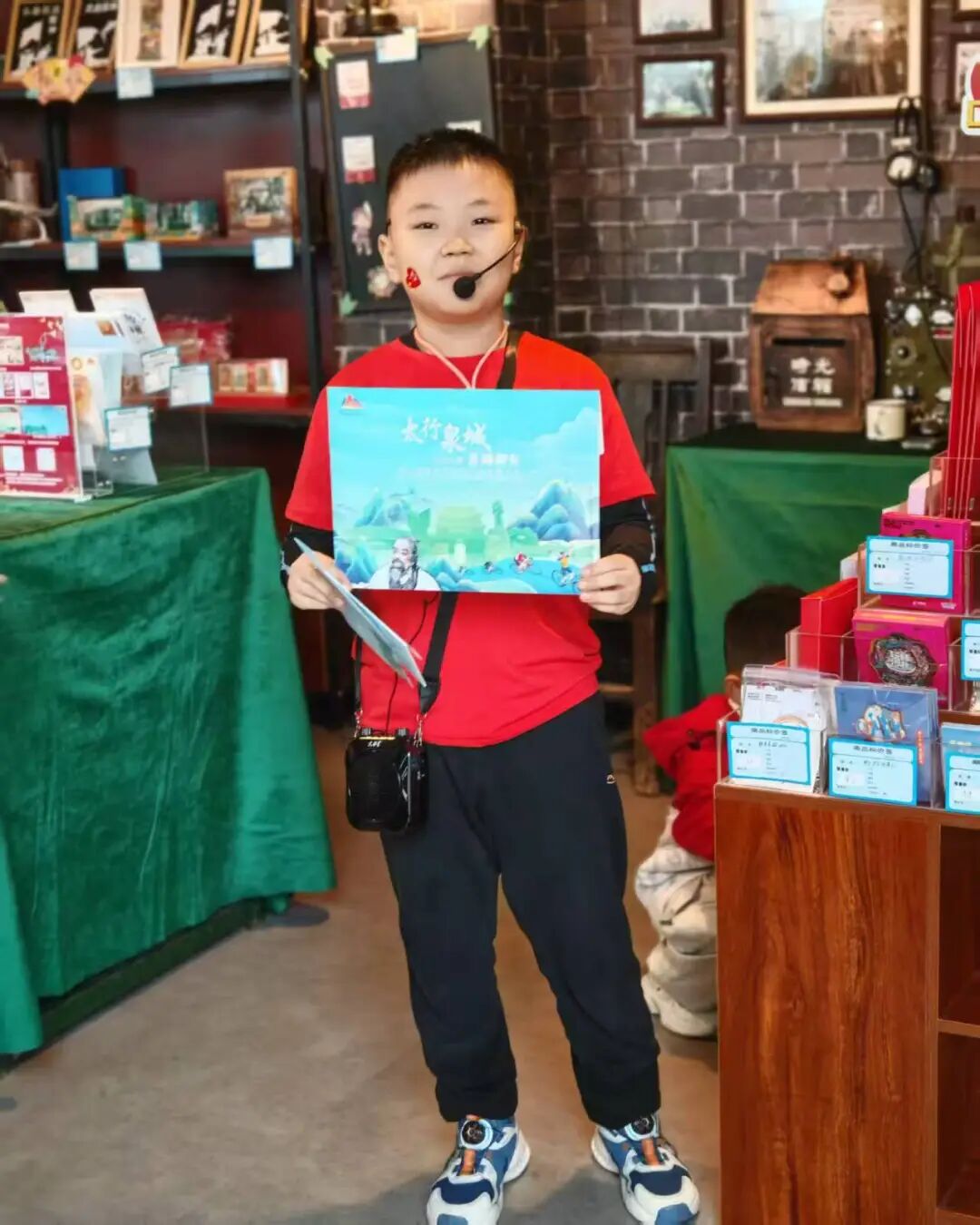 在抗大主题邮局,小讲解员武佳澍自豪地介绍,《河北省第九届旅发大会纪念封》《纪念邮折》等特色邮品。在“我是超级营业员”体验环节,孩子们轮流上岗,介绍明信片、体验集戳乐趣,并将寄托祝福的明信片投入邮筒,完成有意义的寄递实践。