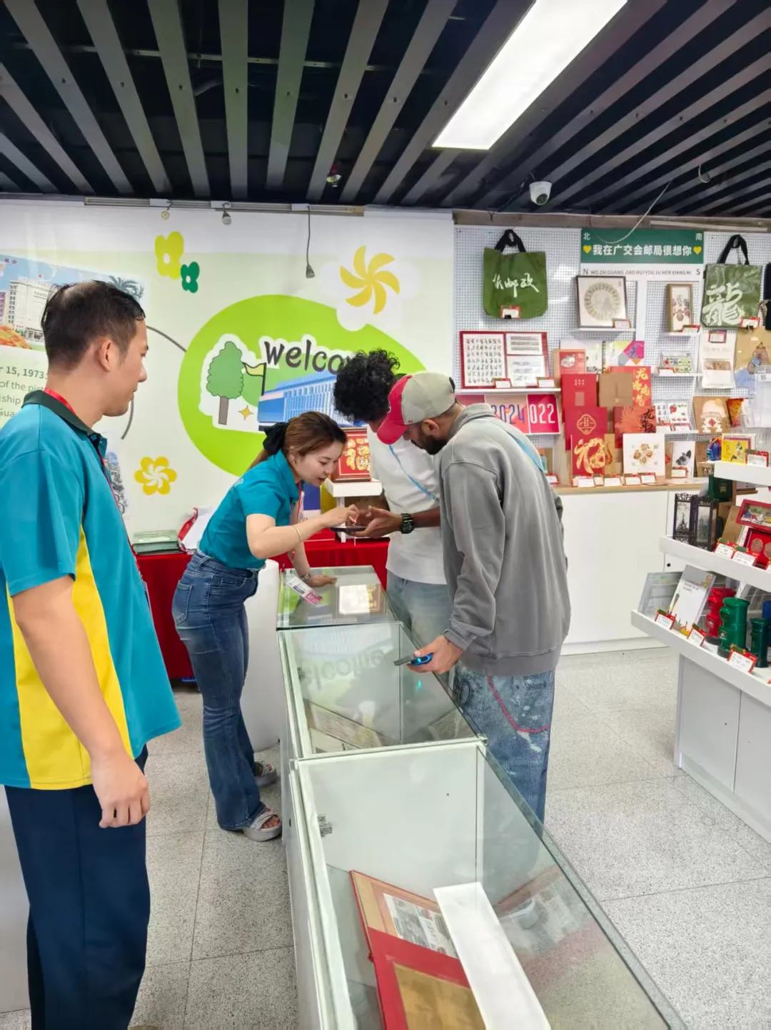 邮票文化展区同样吸引众多外国客商关注。除经典主题邮品外,还特别推出“哪吒”及第十五届全运会系列纪念邮票,助力传播中国文化。