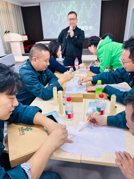 在此环节,管文亮指导员工以两人一组开启创意挑战。简单的曲线被赋予无限可能。协作过程中,员工们相互配合,默契完成作品。分享环节更是笑声不断,创意想法的碰撞不仅激发了大家的想象力与创造力,更在轻松互动中拉近了同事间的距离,消融了日常工作中的疏离感,让团队氛围愈发融洽。
