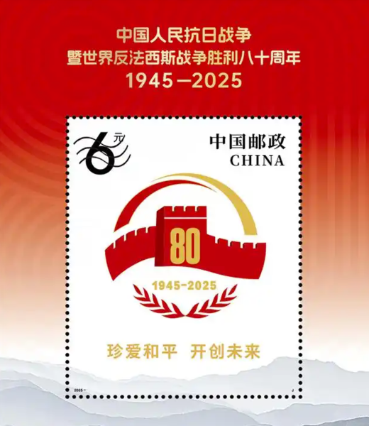 第1至13枚主要表现“铭记历史、缅怀先烈”,邮票图案名称分别为:奋起抗战、八女投江、全民族抗战爆发、平型关大捷、南京大屠杀、台儿庄战役、百团大战、刘老庄连、论持久战、人民战争、中国远征军、并肩战斗、伟大胜利。小型张则以中国人民抗日战争暨世界反法西斯战争胜利80周年纪念活动标识作为主景,寓意“珍爱和平、开创未来”。