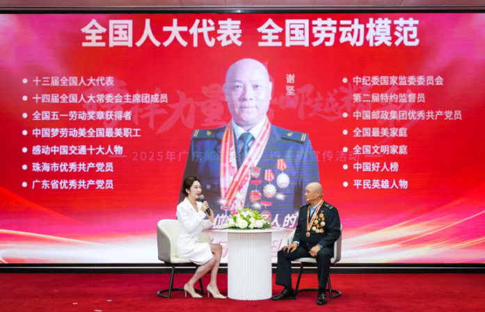 活动特别邀请全国劳动模范、珠海外伶仃岛邮政所营业员谢坚,分享他三十余年的守岛故事。他以海岛为家、与风浪为伴,生动诠释了“人民邮政为人民”的深刻内涵,将整场活动推向高潮。
