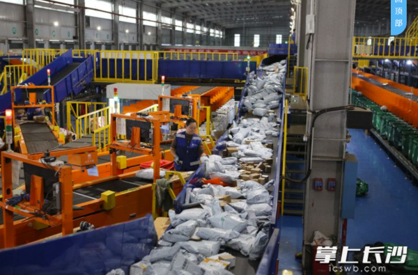 11月11日,位于车站中路的长沙市邮政公司芙蓉直投中心高效运转。 长沙晚报通讯员 雷莹 供图 与此同时,位于车站中路的长沙市邮政公司芙蓉直投中心同样高效运转。11月11日上午,该中心进口邮件总量达2.48万件,较10月日均进口量增长26.7%。中心相关负责人介绍,11月旺季日均进口量预计将达2.9万件。虽然邮件激增,但芙蓉直投中心内没有堆积如山的邮件,只有忙而不乱、井井有条。 一年一度的“双11”,不仅是消费者的购物盛宴,更是快递行业一年中最为关键的“大考”。据统计,10月21日至11月10日,全省邮政包裹快递处理总量达1.67亿件,峰值日处理量突破842万件。为应对激增的包裹,湖南邮政全面启动“双11”旺季保障机制,在智能提速、绿色配送、城乡协同、安全保障等多方面精准发力。 依托全省近60个智能自动化邮件分拣处理中心,湖南邮政构建起高效运转的“算法+仓网”系统,通过大数据精准预判爆款商品流向,提前将商品部署至离消费者最近的末端网点。消费者一旦完成支付,包裹即刻从“身边”出库派送,实现从“人找货”到“货等人”的智慧化升级。“支付尾款没多久,快递就已经到门口”——这样高效的体验,在今年“双11”期间已成为许多湖南消费者的真实写照。 这种“前置仓+智能调度”的模式,不仅大幅压缩了包裹在途时间,更体现了湖南邮政从被动接单到主动预判的服务理念转型,让“极速物流”的体验惠及更多消费者。
