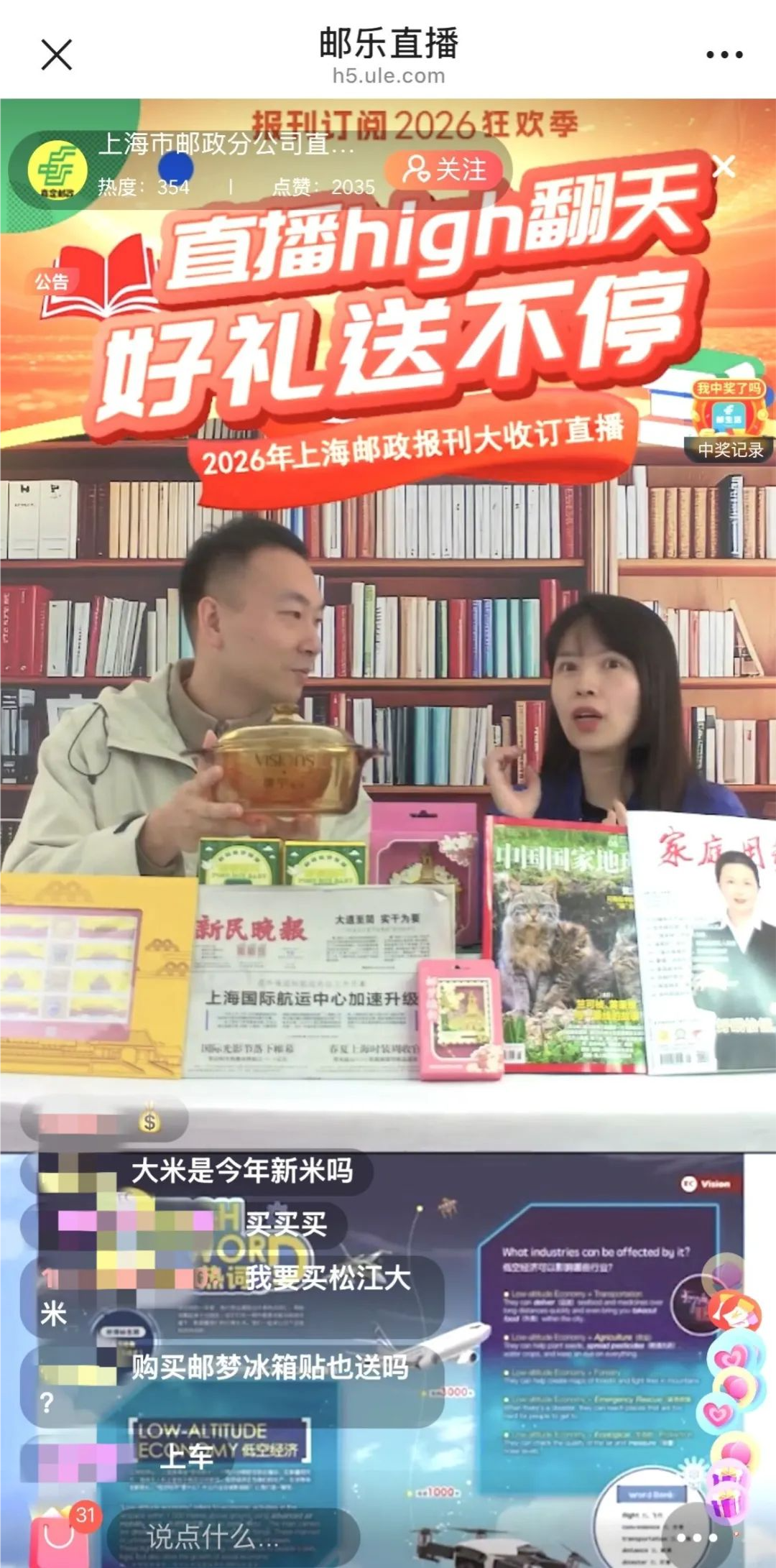 报刊订阅作为邮政传统普遍服务业务,长期面临转型突破与创新发展的双重压力,其中 “传统纸媒受众群体单一” 是核心痛点。为破解这一难题,今年的征订会首次推出 “线上视频同步直播” 模式,旨在用年轻人更易接受的线上交互方式,传递阅读的价值与理念,进而挖掘潜在年轻客户、拓宽受众覆盖边界。在直播间选品策略上,团队突破单一报刊品类限制,构建 “报刊杂志 + 集邮文创 + 邮政农产品” 的多元供给体系。