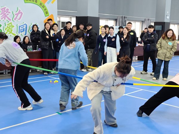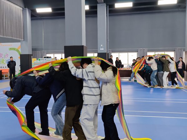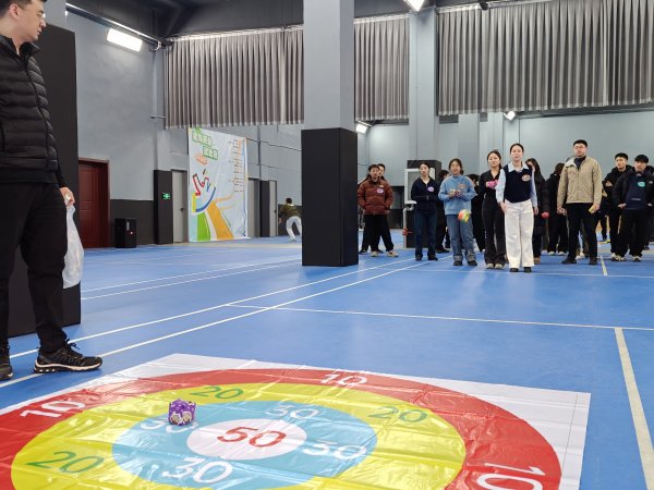 活动现场热闹非凡,趣味盎然的项目让大家乐在其中。“无敌风火轮” 考验着团队的协同默契,队员们步调一致、携手向前,朝着目标稳步迈进;“东西南北跑” 尽显青年们的敏捷身手,大家反应迅速、灵活穿梭,尽情展现青春风采;“沙包投掷盘” 比拼精准与沉稳,每一次投掷都凝聚着专注与期待;“合力建高楼” 挑战团队耐心与协作,大家分工明确、默契配合,共同搭建起 “胜利大厦”;而 “同心鼓击鼓” 项目更是将现场气氛推向高潮,队员们凝心聚力、协同共振,鼓点声声传递着团结的力量,欢呼声、喝彩声此起彼伏,响彻整个活动中心。集体项目结束后,“我与天公试比高” 个人趣味项目同样吸引了众人踊跃参与,大家奋勇争先,在欢乐比高中释放压力、增进友谊。