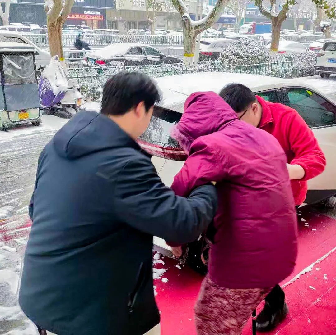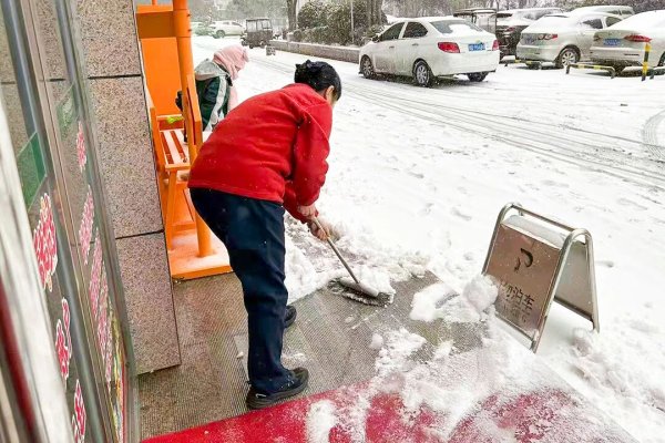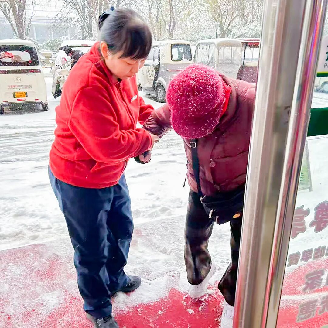 新乡市红旗区邮政分公司网点工作人员提前到岗,清扫门前积雪、铺设防滑垫,主动搀扶前来办理业务的老年客户,用贴心服务驱散冬日寒意。