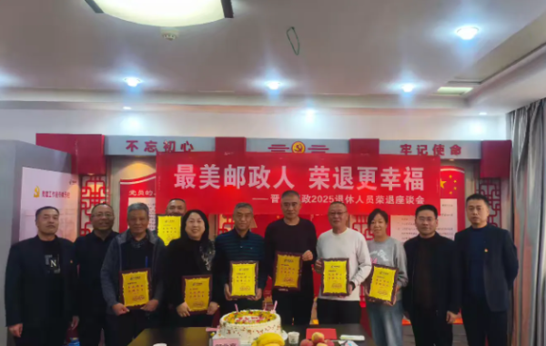 冬日温情暖人心,薪火相传话初心。12月10日,晋中邮政工会以“最美邮政人 荣退更幸福”为主题,隆重举办2025年退休员工荣退座谈会。工会主席郭总携相关部门负责人与退休员工欢聚一堂,通过庄重而温馨的仪式,回顾奋斗岁月,共话美好未来,为退休员工的职业生涯画上圆满句号。