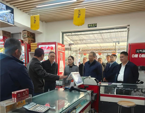 △与会领导参观红旗村第100家邮供为农综合服务站,并听取站点负责人介绍。