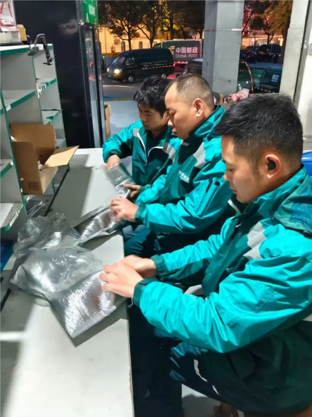 为高龄老人送鲜奶是徐汇区民政局和某乳业集团联合发起的活动,目前该项目已进入常态化运营阶段,徐汇邮政日配送量超7000件,服务覆盖超7000名,居住于徐汇区的高龄老人。项目负责人劳国铭表示,鲜奶会在当天下午15:00-17:00到达区分公司,工作人员按照每日各支局配送量精准分拣,全程冷链运输分拨至各支局,支局于次日清晨5:30开始配送,投递员出发前会装配冰袋,确保鲜奶品质。