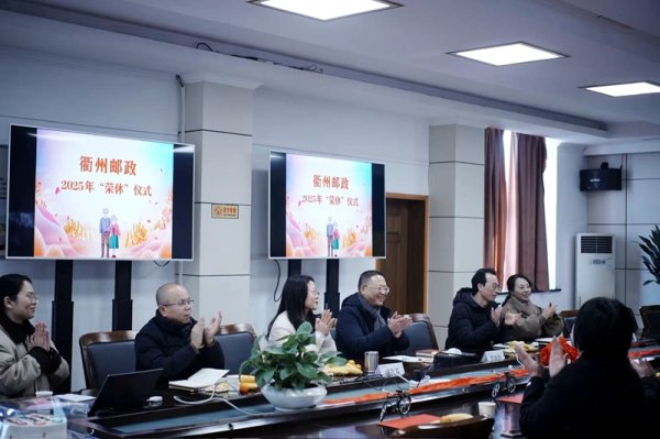 12月25日下午,衢州市分公司为2025年下半退休员工举办了荣休仪式,衢州市分公司党委书记、总经理詹旭波、工会副主席戚伟芬以及退休员工所在部门负责人参加。