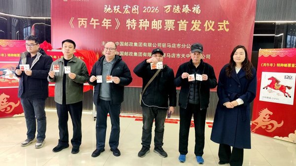 1月5日,中国邮政发行《丙午年》特种邮票一套2枚。当天,河南多地举办了形式多样的邮票发行活动。通过融合公益惠民、集邮品鉴、文化互动等场景,为广大市民与集邮爱好者搭建了近距离感受生肖邮票艺术魅力的平台,用邮政独有的传播方式,让生肖文化在中原大地上焕发新时代光彩。