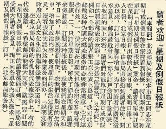 此外,邮局推出的单订“星期及例假日报纸”业务,也特别受欢迎。人们可以单独订阅在星期日或例假日出版的《北京日报》等报纸,由邮局直接送到读者住所,这样,星期日或例假日就能在家里看报纸了。这项服务给读者带来了很大便利。