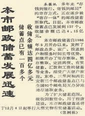 1986年,北京开办邮政储蓄业务,从此,“存钱到银行、寄钱到邮局”的传统观念开始改变。