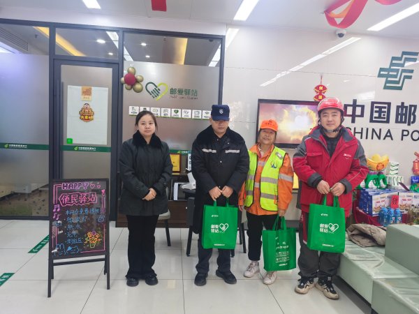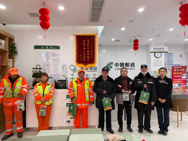 1月15日,为迎接“工会驿站服务户外劳动者日”,向辛勤付出的户外劳动者传递温暖与祝福,西安市邮政工会组织各邮爱驿站开展了形式多样的关爱活动。