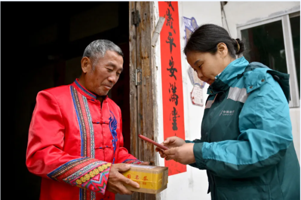 目前,铅山县110个行政村实现快递免费直投,日均约5000件包裹直达村民手中,全年农产品寄递量达49万件,让深山里的特色农产品顺畅出山,为乡村振兴注入强劲交通动能,为农民增收、农业增效提供保障。(丁铭华 俞嘉怡 摄)