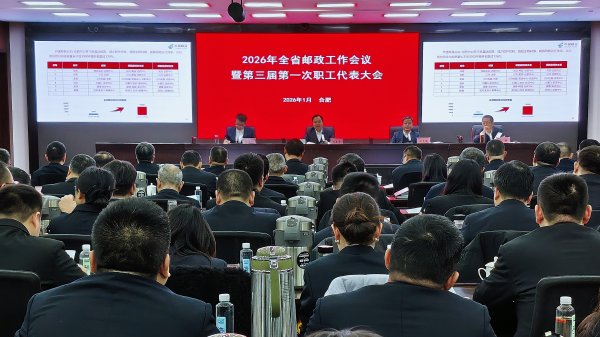 1月20日至21日,2026年全省邮政工作会议暨三届一次职工代表大会在合肥召开。会议以习近平新时代中国特色社会主义思想为指导,深入贯彻党的二十大和二十届历次全会精神以及中央经济工作会议精神,全面落实集团公司工作会议精神,总结2025年工作,分析面临的形势,部署2026年重点任务。