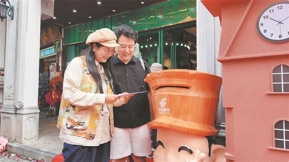 12月5日升级开业的海口骑楼主题邮局成为游客打卡新地标。来自甘肃的新婚夫妇杜欣和吴亚峰体验后竖起了大拇指,“这里很有特色,不仅可以打卡集邮戳,还能给家乡的亲朋好友邮寄本地特色明信片,体验感非常棒。”这些服务既丰富了游客的体验感,更让邮政成为传播海南文化的载体,助力自贸港文旅产业融合发展。