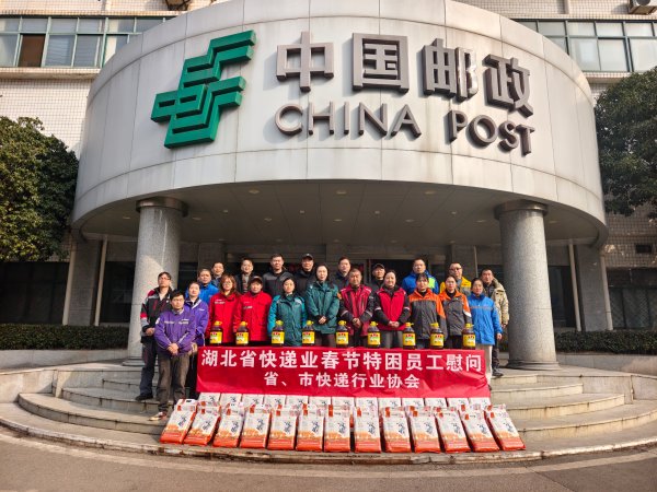 1月28日上午,湖北省快递协会联合市快递协会在武汉邮区中心开展2026年度春节特困员工慰问活动。省、市快递行业协会相关领导出席,向各快递企业40余名特困员工集中发放慰问金和物资,并传达了组织的新春问候。