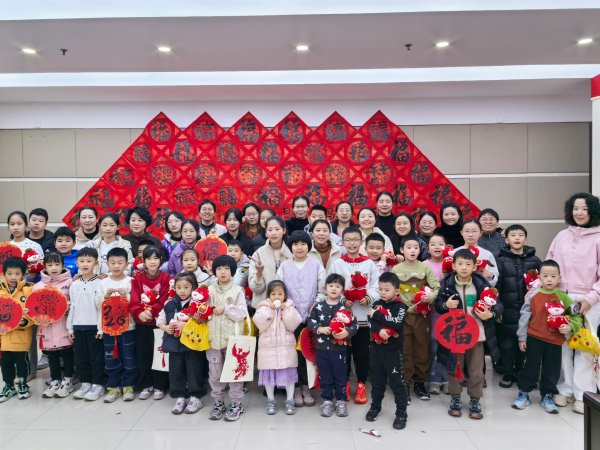 趣味击鼓传花游戏将现场氛围推向高潮。孩子们围坐成圈,随着鼓声传递物品,鼓声骤停时,拿到红花的孩子表演唱歌、朗诵古诗等小节目。孩子们大方展示自我,现场欢声笑语不断,完成任务的小朋友均收获精美小礼品。活动最后,“福启新岁”主题福字墙前热闹非凡,墙面张贴的巨型福字与马年生肖图案相映成趣,工作人员全程提供拍照服务,记录亲子温馨瞬间,留存美好回忆。
