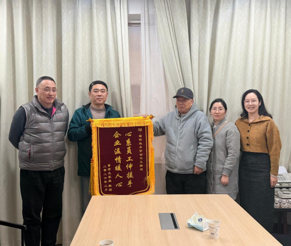 近日,职工家属特意为分公司送来锦旗,以最庄重的方式表达对分公司及职工们的深切谢意,锦旗上“心系员工伸援手,企业温情暖人心”的真挚话语,既承载着家属满满的感恩之情,也彰显了分公司与职工之间亲如一家、守望相助的深厚情谊。