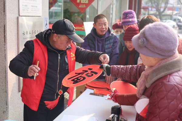 活动现场,不少市民排队等候,网点门口洋溢着热闹温馨的节日气氛。此次送“福”活动共送出80余副,通过笔墨传递温情,将新春祝福融入传统书法艺术,为前来办理业务的客户及周边市民送去节日问候。活动不仅营造了喜庆祥和的春节氛围,同时也展现了绍兴邮政网点服务的温度,进一步拉近了邮政与社区居民的情感距离。